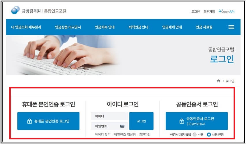 메인 | 금융감독원 연금포털시스템