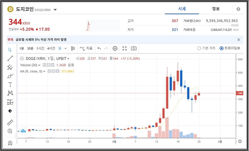 관심을 받으며, 업비트 암호화폐 거래소 기준 4월 19일 575원까지